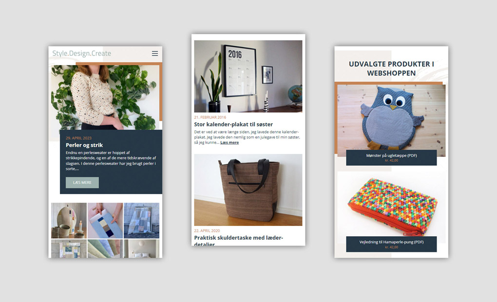 StyleDesignCreate er min personlige blog, hvor jeg skriver om kreative DIY-projekter og forskelligt håndarbejde. Den har været aktiv siden 2009 og haft mange forskellige design gennem tiden. Websitet er bygget i Wordpress og baseret på Bootstrap. Til bloggen hører en lille shop i Woocommerce.